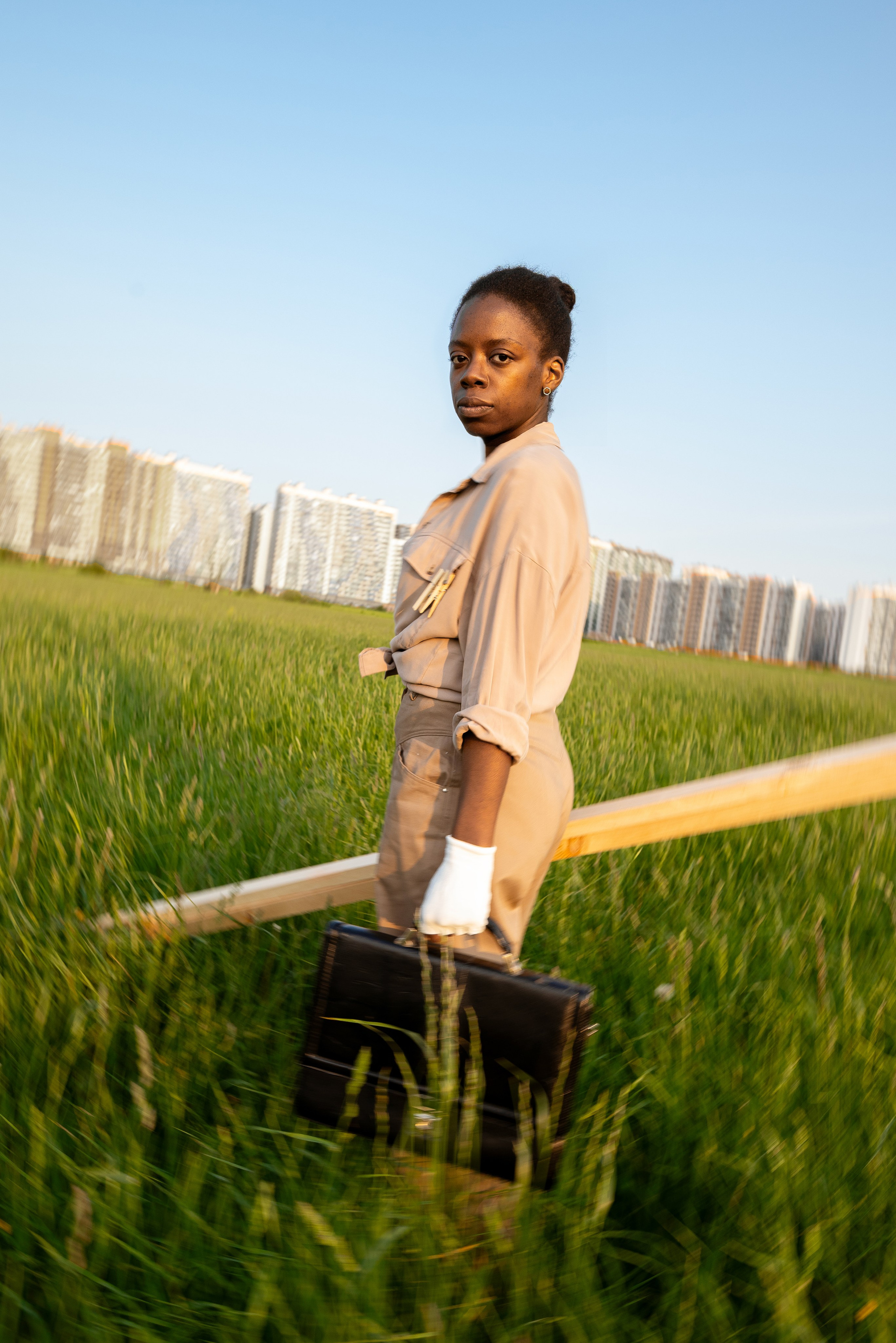 Она вышла в поле, где высокий ветер развевал траву, как бесшумных вестников перемен. В руках у неё был кожаный портфель — словно сундук с воспоминаниями.