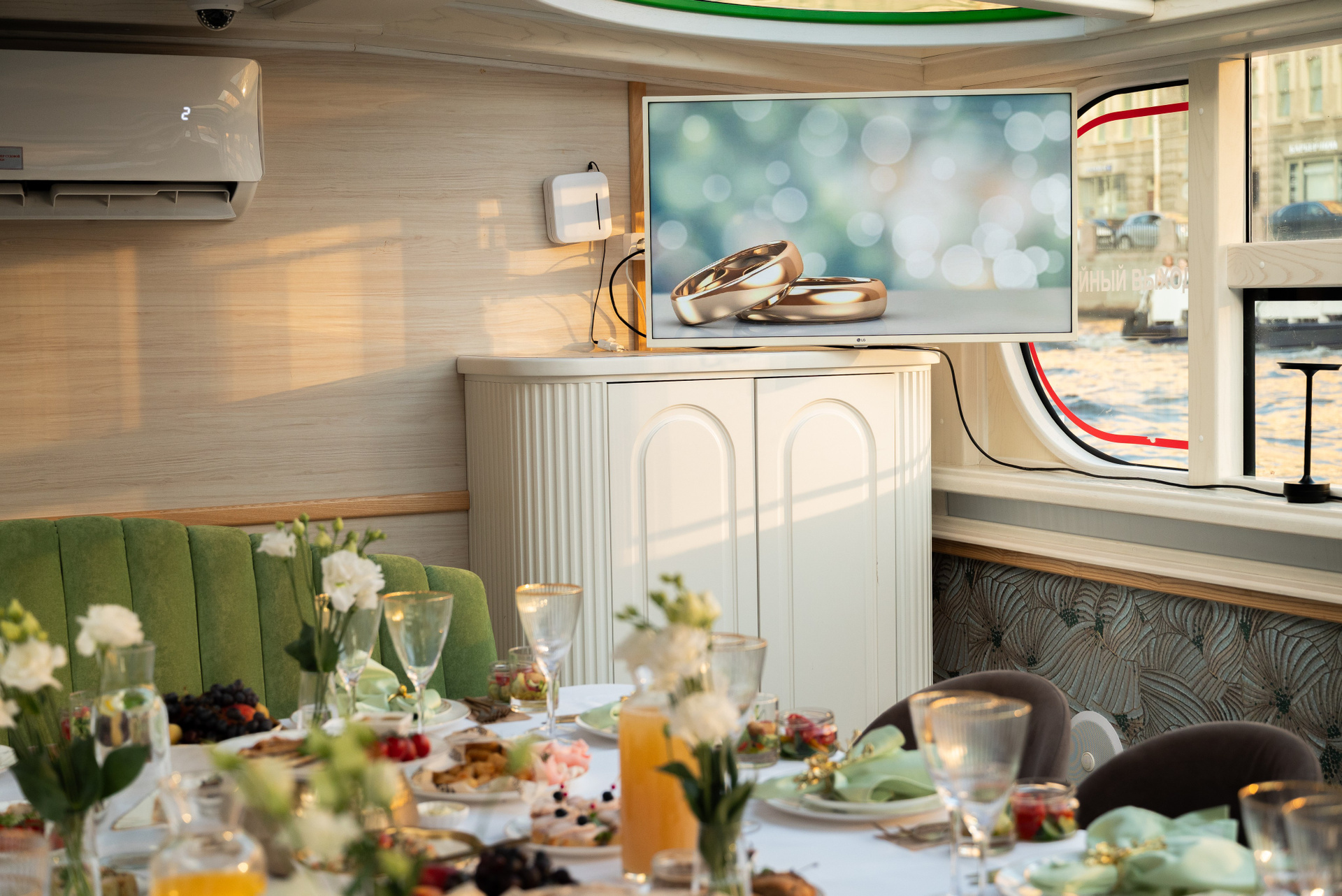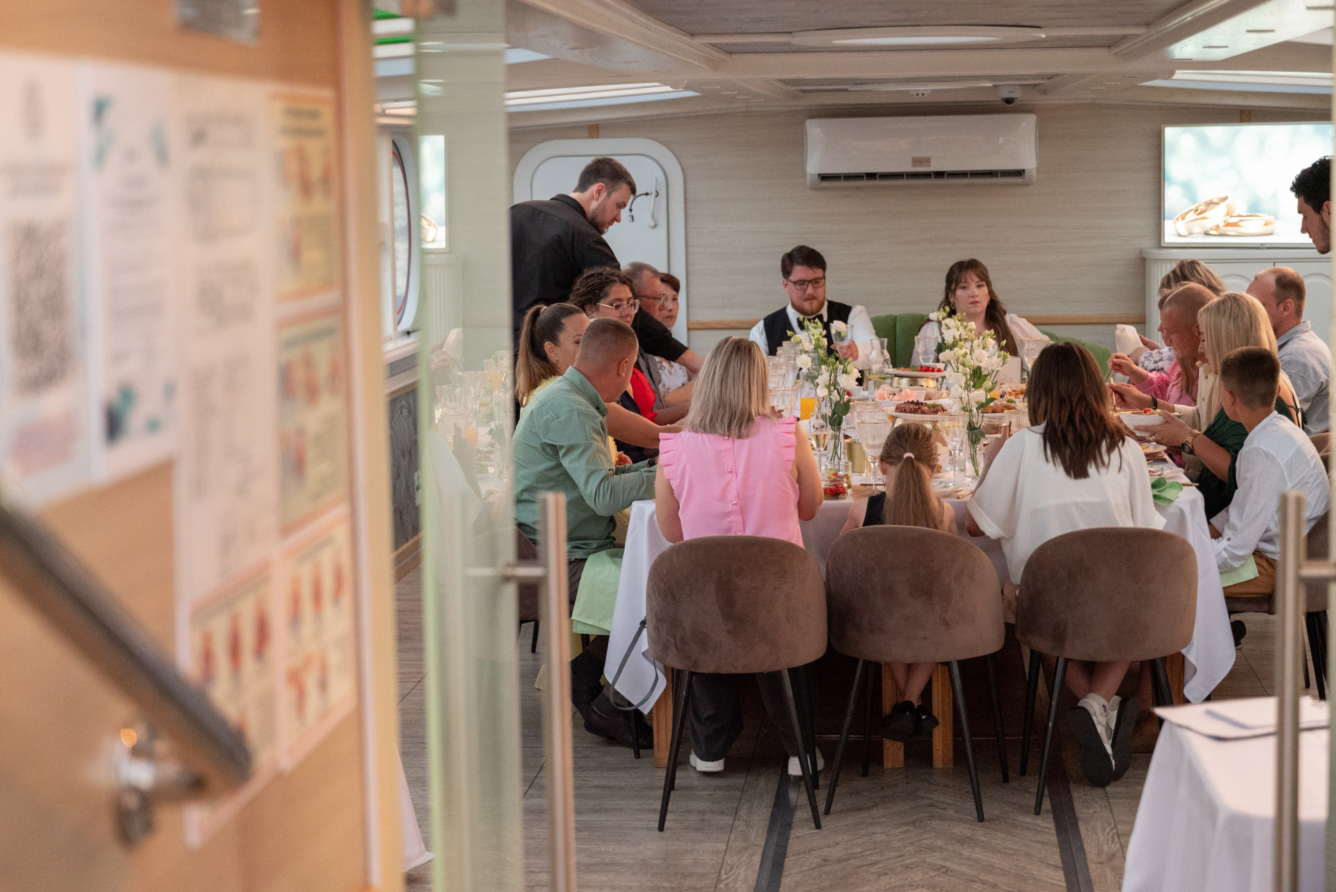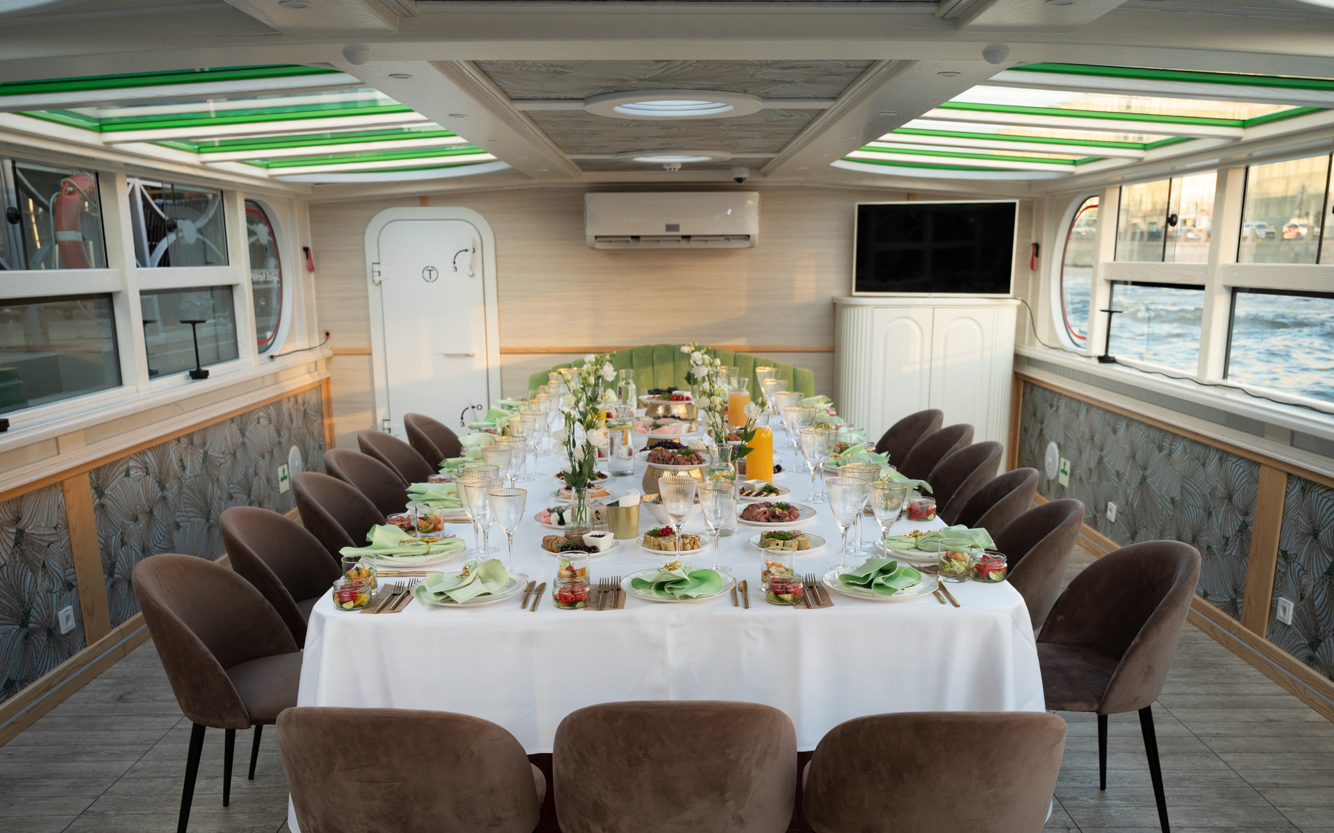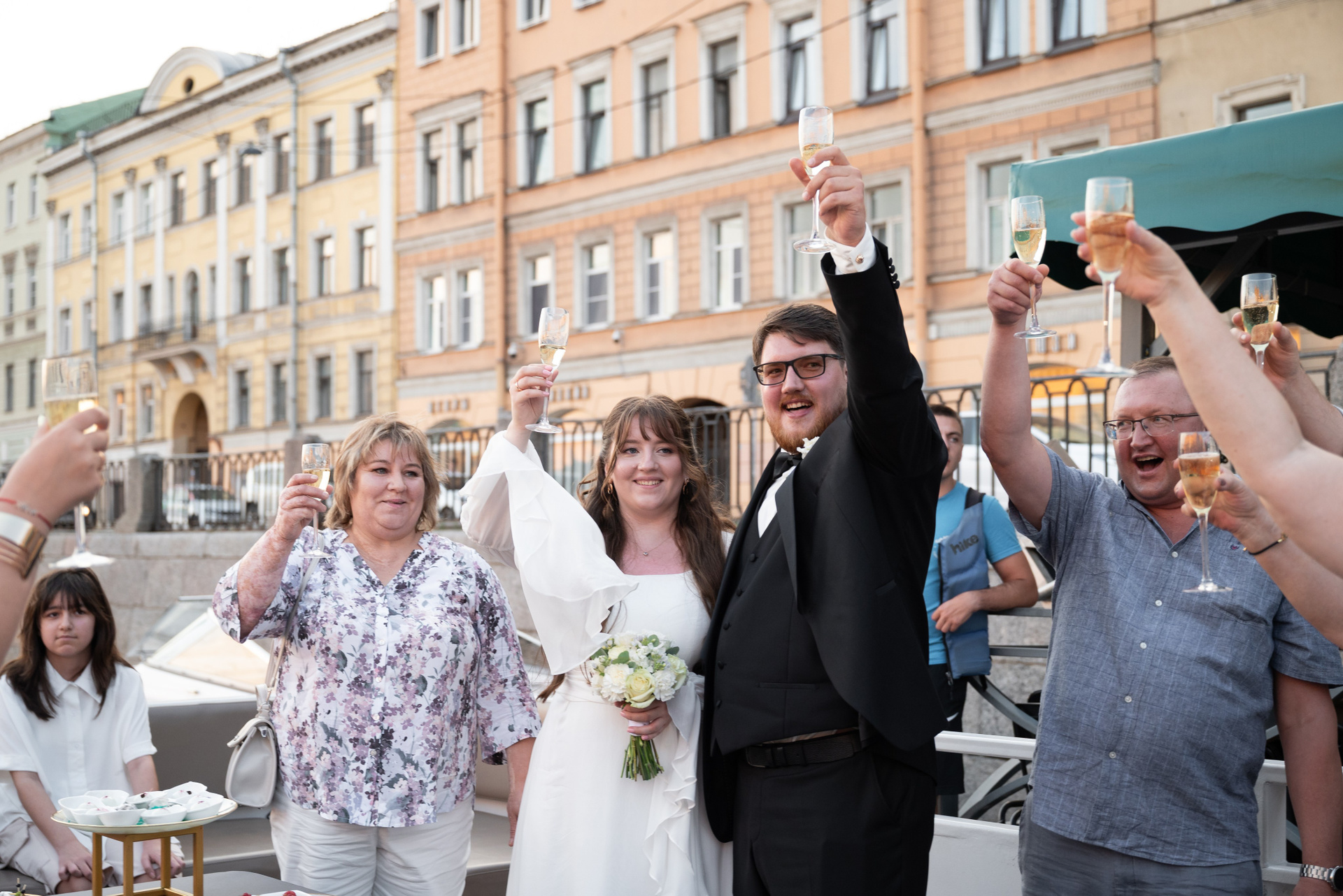 Теплоход стал сценой для праздника. Город остался на берегу, а на палубе — только смех, танцы и искренние взгляды.